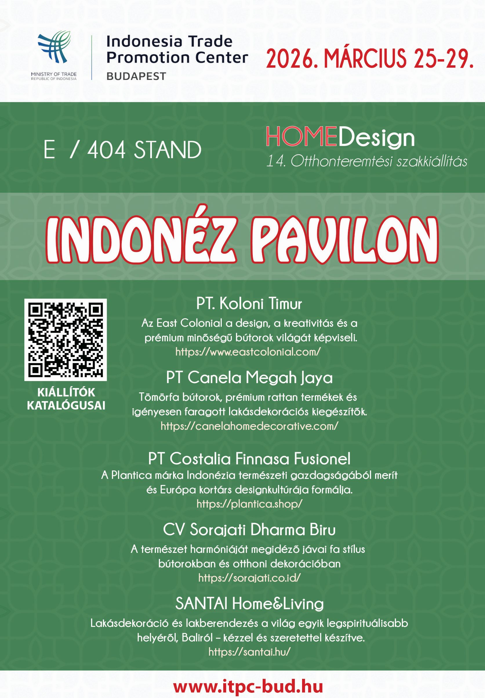 Az Indonéz Kereskedelemfejlesztési Központ az OTTHONDesign kiállításon 2026. március 25 és 29 között