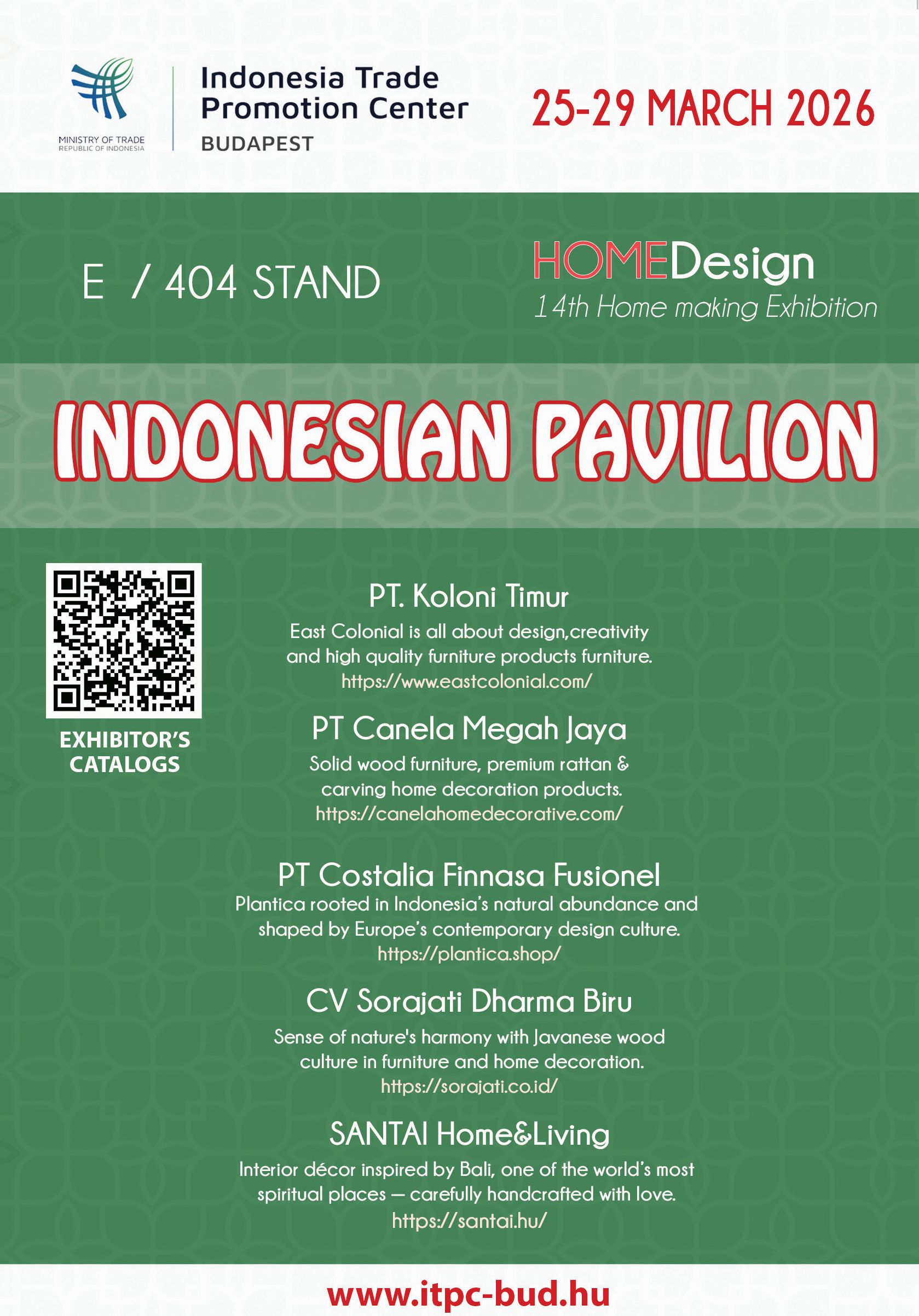 Az Indonéz Kereskedelemfejlesztési Központ az OTTHONDesign kiállításon 2026. március 25 és 29 között